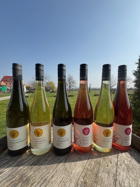 Nr. 12 2025er Grauer Burgunder feinherb Nr. 14 2024er Blanc de Noir trocken Nr. 21 2024er Sauvignon Blanc feinherb Nr. 33 2024er „Paradieso“ Rosé Cuvée feinherb Nr. 55 Secco weiß Nr. 57 Secco rosé